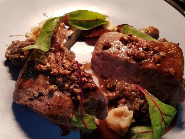 mit Topinambur, Apfel-Birnen Mousse und Wildkräutern